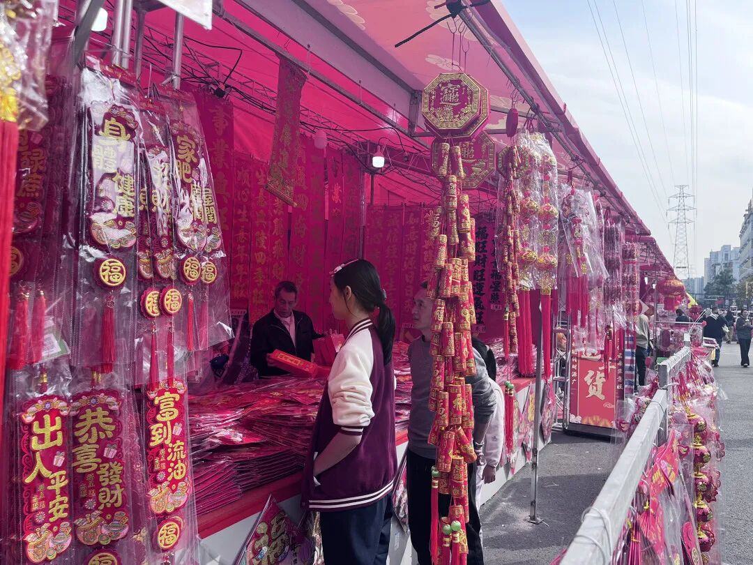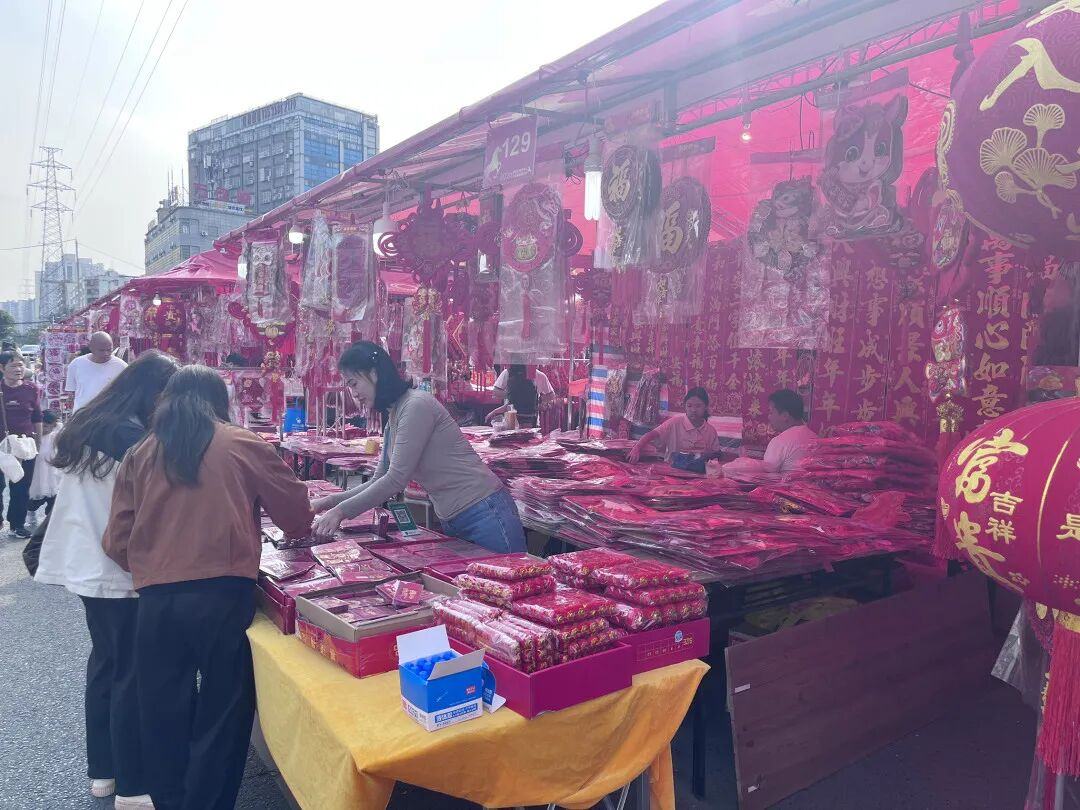 现场节日氛围十分浓厚,不少街坊带着家人来进货。