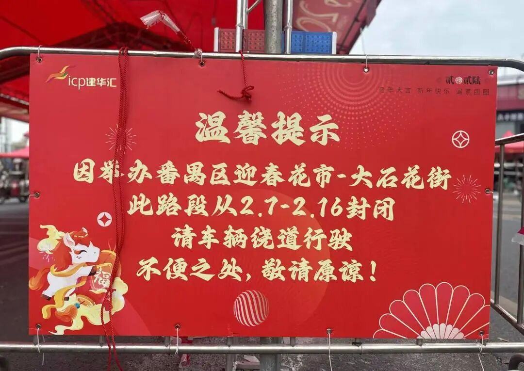 另外,因举办迎春花市,建华汇商业中心路段将封闭,请车主绕道行驶。