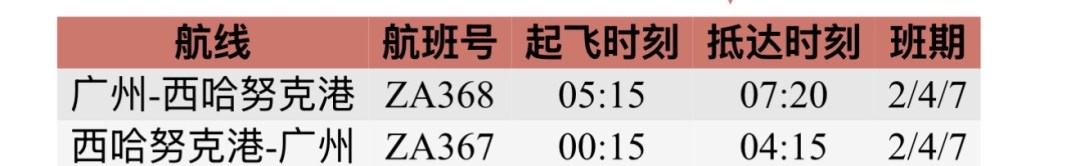 注:以上航班时刻均为当地时间,信息仅供参考,以航司官网查询为准