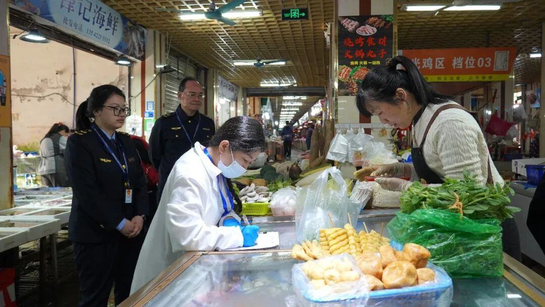 除了精准快检,全覆盖日常监管同步发力。在农贸市场,执法人员穿梭于摊位之间,逐项核查经营者营业执照、进货凭证、产品合格证明;在药店、商超,重点检查处方药登记规范度、商品保质期等关键环节,尤其临近春节年货采购高峰期,进一步加大巡查频次,全力护航节日消费安全。“看到监管人员常来检查,买食品、办年货都特别放心。”市民余女士的心声,道出了众多群众的感受。蔡昱冰提醒,市民选购食品应优先选择超市、农贸市场等正规渠道,避免购买流动摊贩售卖的产品。