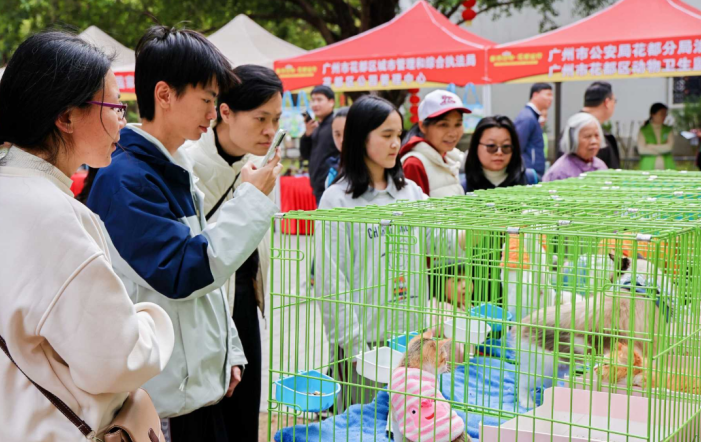 在知识分享区,广东省农业科学院动物卫生研究所专家围绕宠物常见人兽共患病防控进行讲解。“狂犬病、弓形虫病等并不可怕,关键在于科学预防。”专家用通俗语言结合实例,为市民答疑解惑。“花都宠你”志愿服务队队员刘女士分享了救助流浪动物的经历。“每只被救助的动物都值得被善待。”她的讲述引发共鸣,现场设立的流浪动物领养咨询台前,不少市民驻足了解。