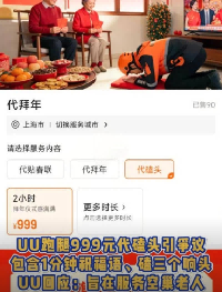 马年春节临近,UU跑腿推出的“代拜年帮尽孝”服务在网络引发热议。