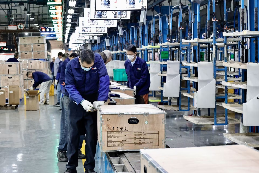 生产线的忙碌,直接映射着市场的温度。“这批是2月份以及部分3月份发往海外的摩托车,不少海外客户考虑到中国春节假期放假,一开年就加紧加下订单,我们工厂也积极抢订单、促生产。现在看数据,单是目前可以看到的3月份订单,同比就增长了15%,今年一季度的订单也有两位数的增长。”广州豪进摩托车股份有限公司国际销售部经理王贻玲指着正在装上集装箱的货品说:“这批货品的货值超1000万美元,约90多个货柜将送往南沙、盐田港等码头,并装船运往非洲、东南亚等地。”