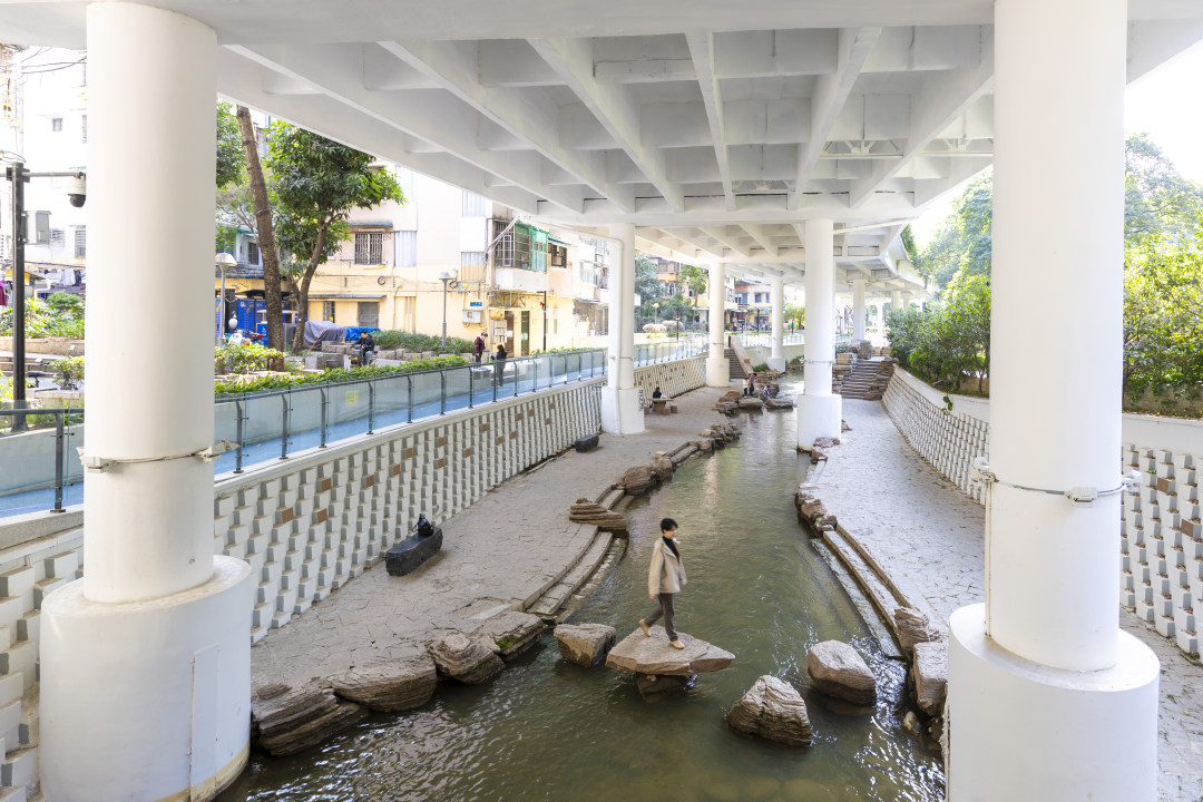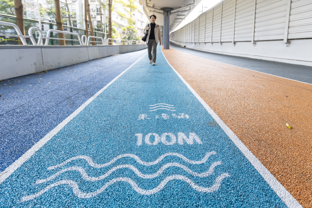 东濠涌二层步道现在是一条彩色跑道。