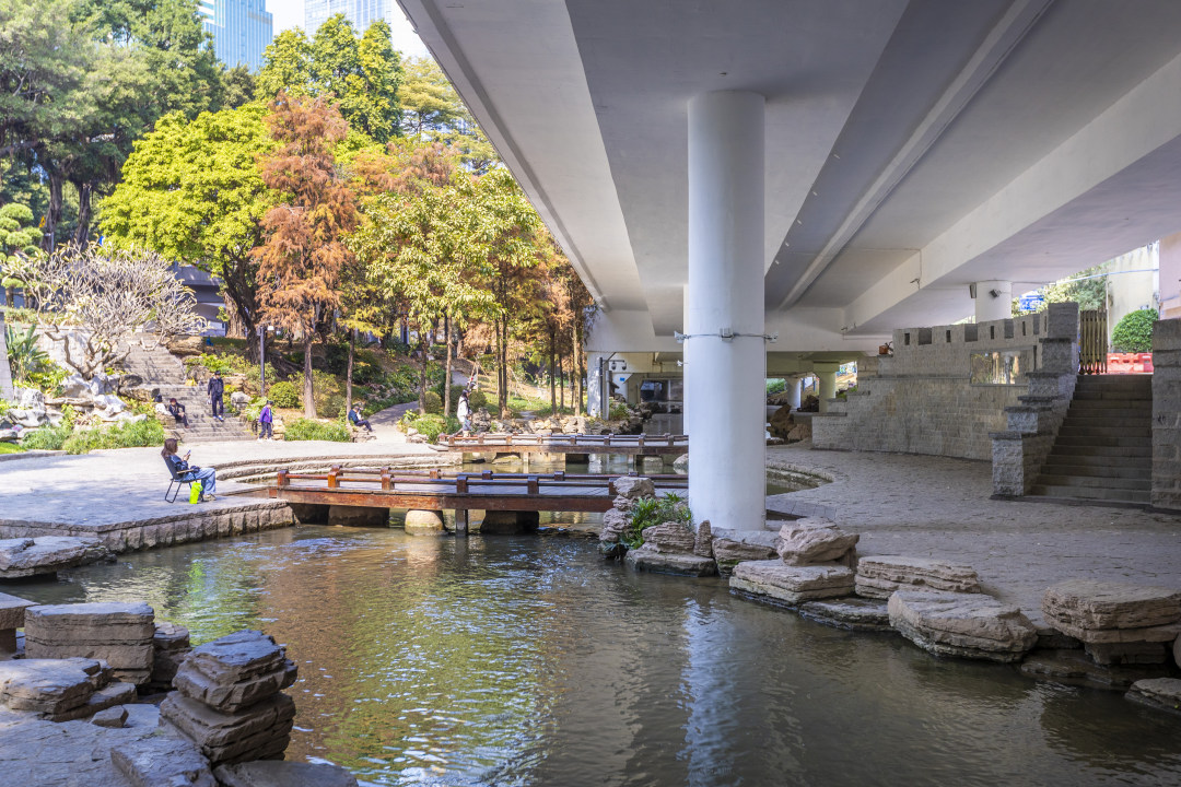 生态改善激活了空间活力,东濠涌沿线已成为越秀区文商旅融合发展的重要廊道。河涌东岸新添的“东濠涌”彩色嵌瓷字样格外醒目,吸引了很多市民在此拍照。在东濠涌博物馆段,8000平方米的桥底空间涂装成白色后变得清朗明亮。更让我惊喜的是,昔日水泥地面的步道,升级为铺装了彩色沥青的缓跑径,用鲜艳的颜色与非机动车道区分,串联起桥上桥下,成为老城区鲜活的风景。