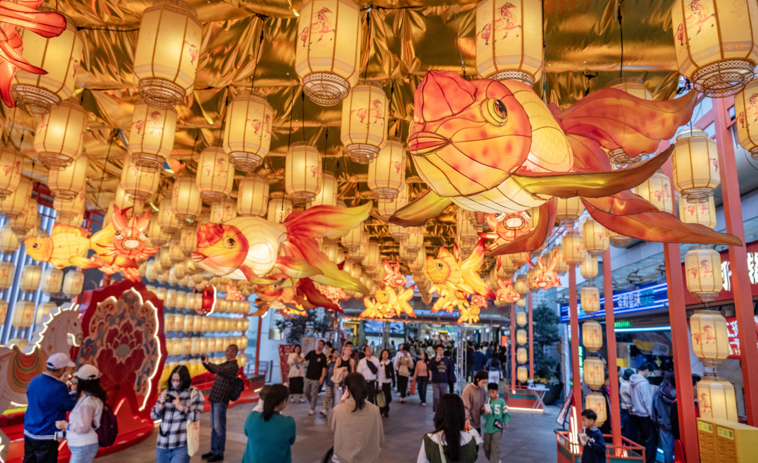 正佳广场入口处悬挂着喜庆的新年灯饰。广州日报新花城记者廖雪明摄