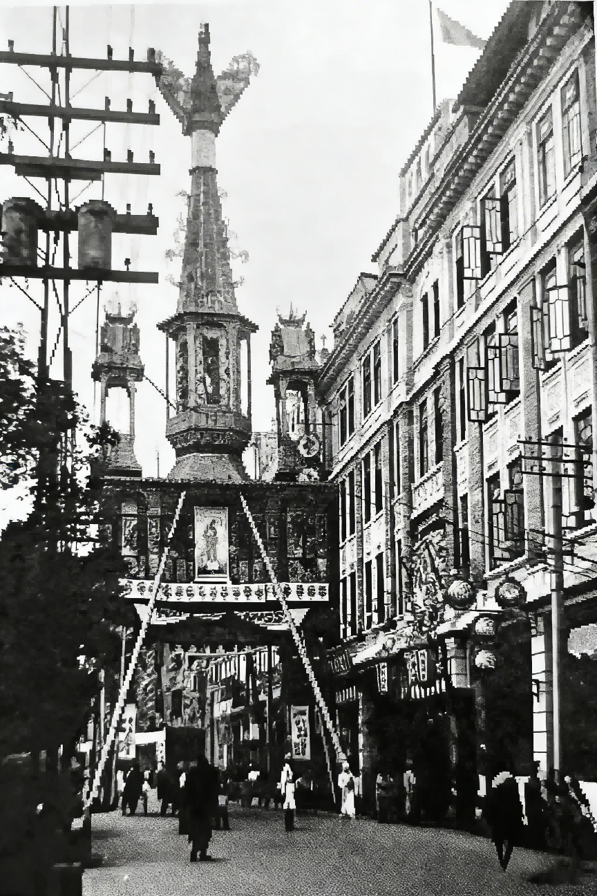 梅兰芳到海珠大戏院演出,门前悬挂巨幅剧照