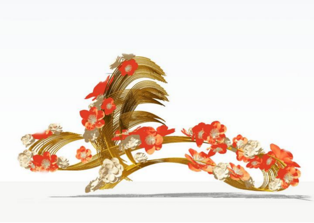牌楼中央设置“红棉飞马”雕塑造型,以行云流水的书法“马”字为骨架,既契合2026年丙午“火马”年的生肖特质,造型又似腾跃的浪花,暗合天河区与珠江水脉的历史基因和文化脉络。