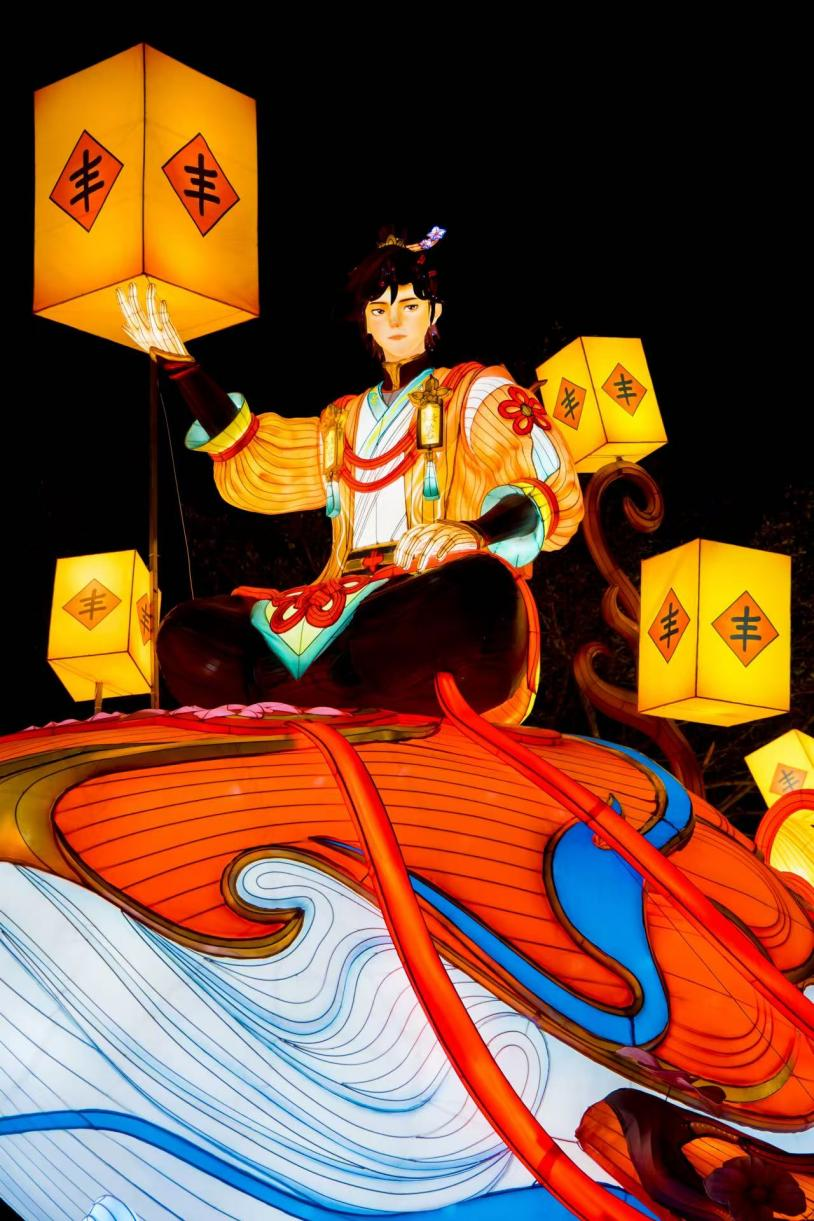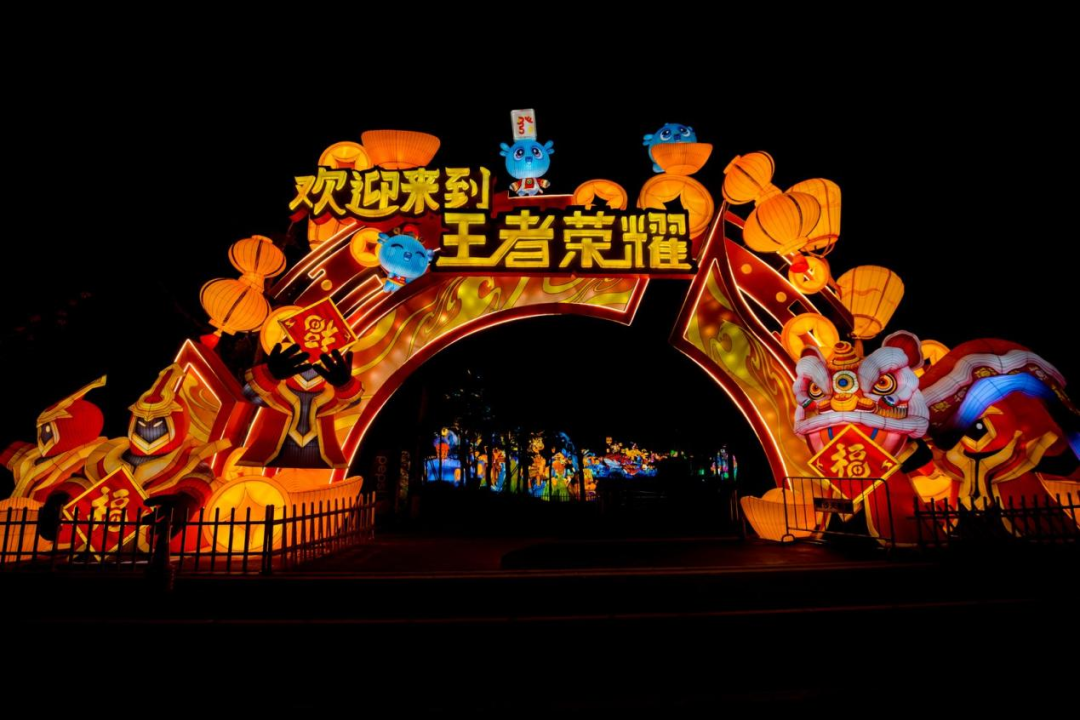 灯组以国民游戏IP《王者荣耀》英雄武圣关羽为核心,鲁班七号、庄周、云缨、蔡文姬、李元芳、梦奇等多位峡谷英雄化身新春福使,惊喜现身为大家送福送喜。
