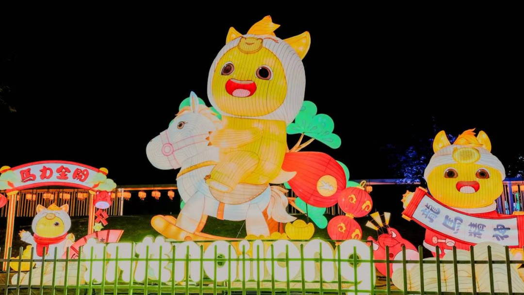 超人气原创动漫IP“奶龙”头戴俏皮龙头帽、骑跨小马造型惊喜登场,四周环绕着“龙马精神”等主题的奶龙系列形象。