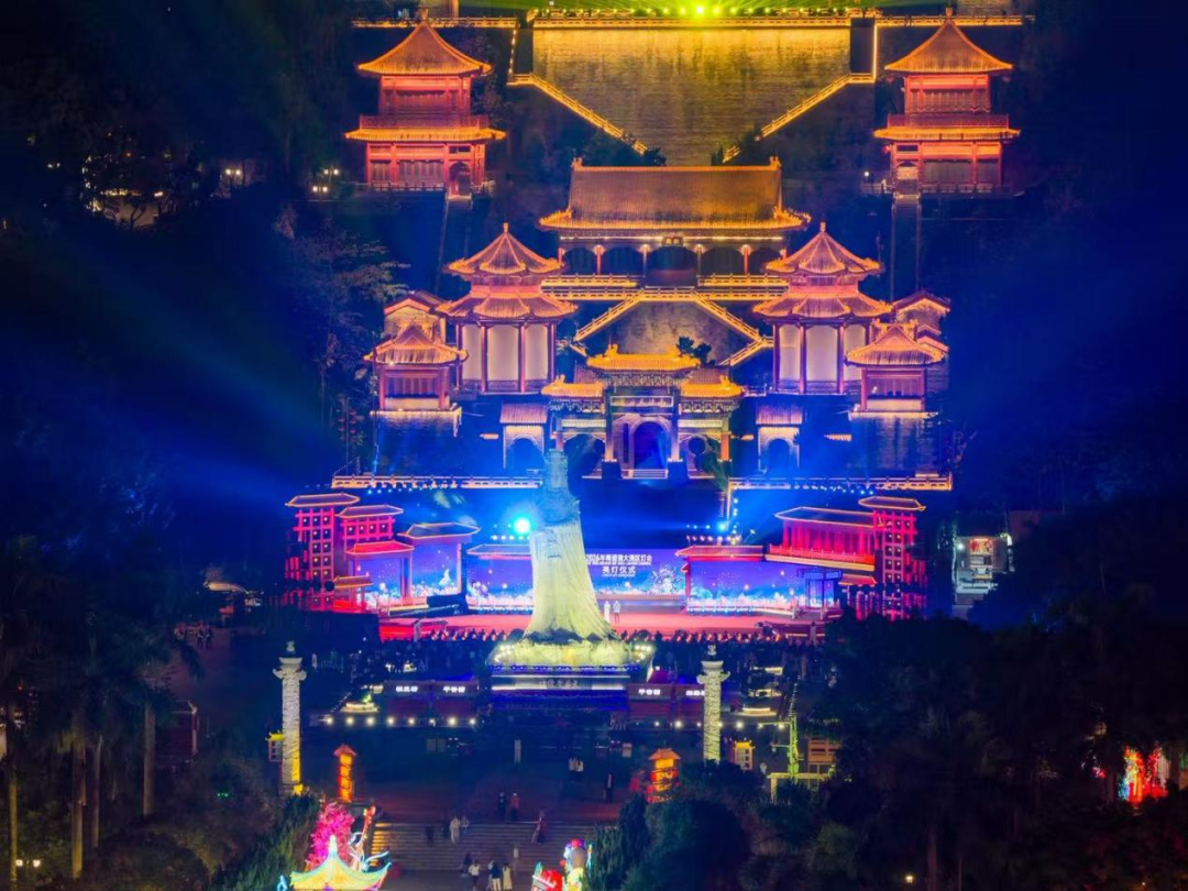 光影秀以“山海共此时·光影耀南沙”为主题,以南沙天后宫古建筑群为载体,于山海间铺展出跨越古今的光影长卷。