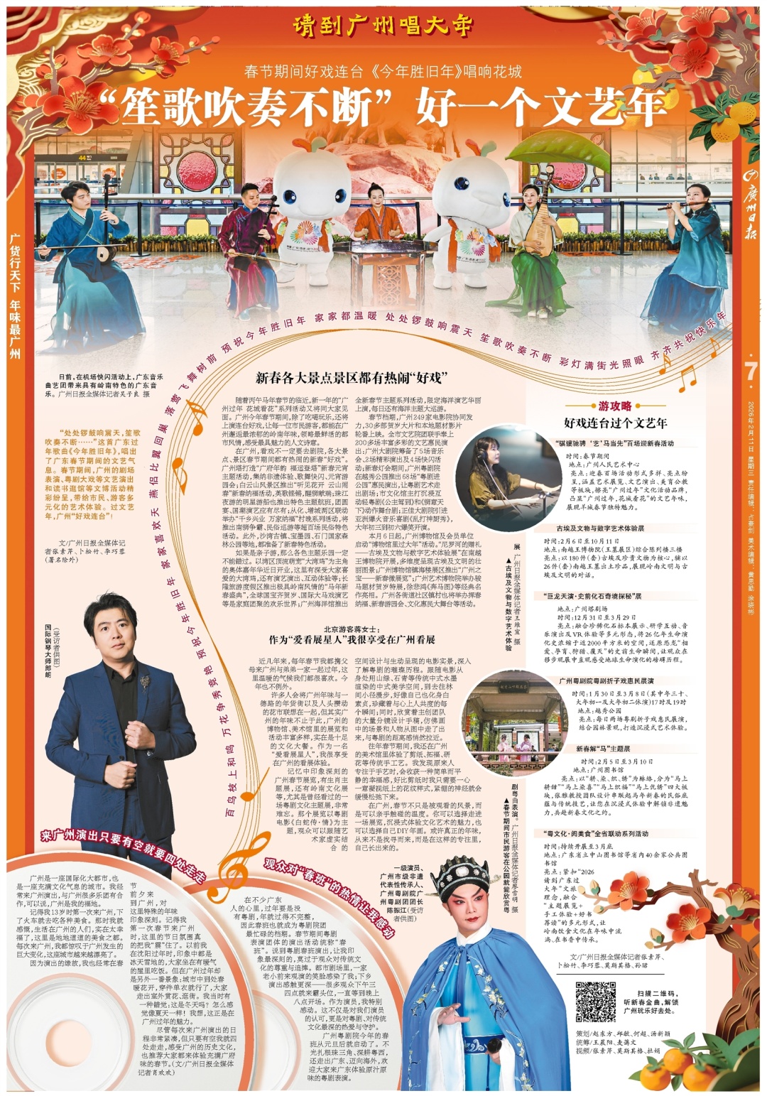 尽管每次来广州演出的日程非常紧凑,但只要有空我就四处走走,感受广州的历史文化,也推荐大家都来体验充满广府味的春节。