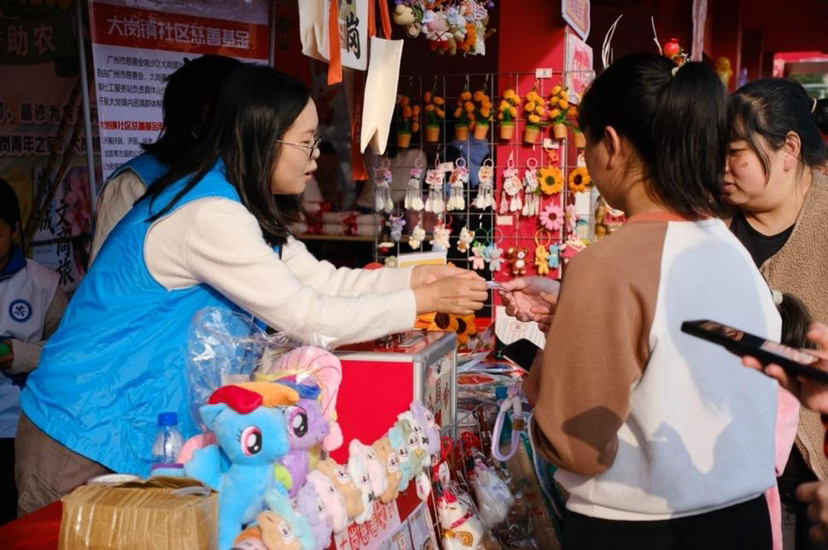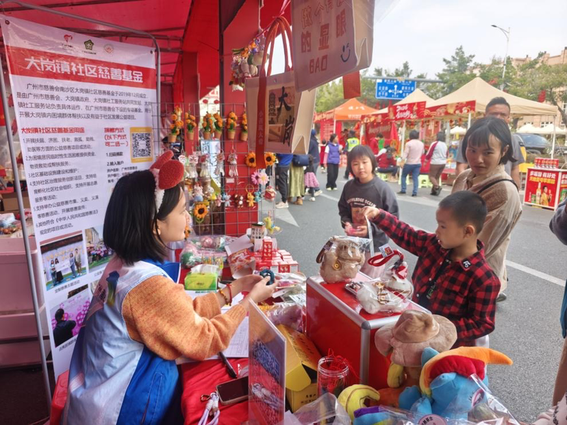 义卖区各类好物琳琅满目,吸引市民驻足挑选,所有收入全额捐赠至大岗镇社区慈善基金,专款用于辖区扶弱济困和公益项目。