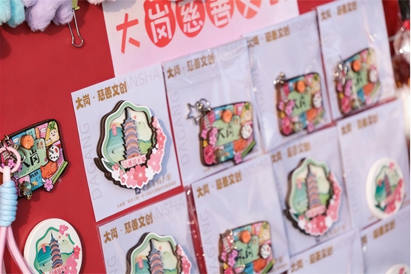 本次活动紧扣“扶弱济困、全民参与”主题,以新春花市为契机,打造多元慈善参与场景,活动现场划分三个参与区域,搭配趣味互动环节,让市民在逛花街的同时轻松参与慈善活动。其中,慈善文创产品作为活动的特色亮点,成为现场吸睛的重要载体,这些文创产品深度融合大岗本土文化,设计精巧、颜值在线,让文创之美与公益之心双向奔赴。