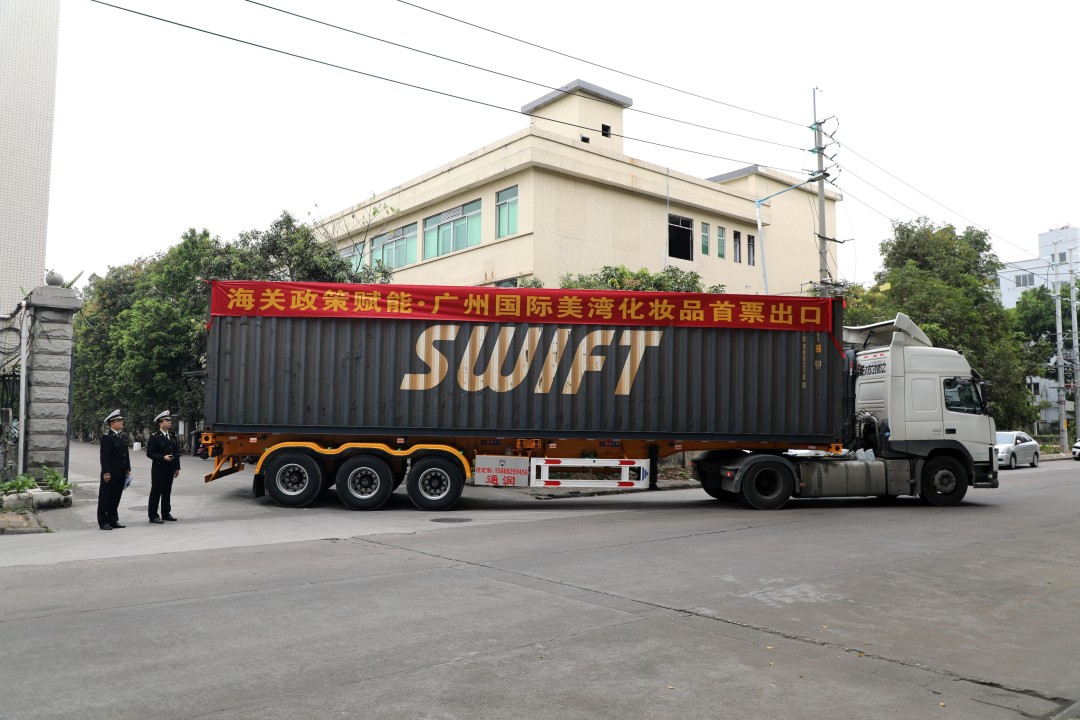 在广州海关所属花都海关监管下,“白名单”企业首批出口化妆品顺利发运。