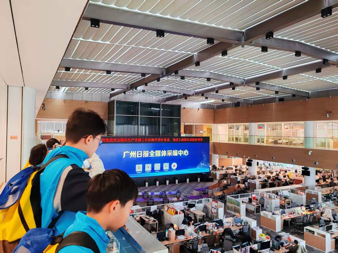 在广州报业文化中心,孩子们全面了解了中国第一家报业集团——广州日报报业集团的改革创新系列举措,在全国地方报纸中率先由4版扩至8版,广告收入曾多年蝉联全国第一,陆续打造新花城、Guangzhou WOW!等全媒体传播阵地,形成广州日报国际传播矩阵……贯穿5天研学过程的媒体实践和主流媒体的责任担当,在这里有了更为具象的落地。