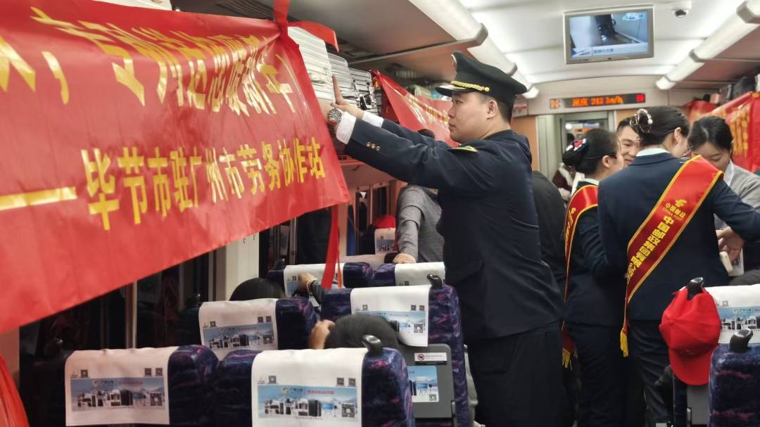 “我下午5点半到赫章,等我吃饭!”车厢里,不时响起用家乡话向家人报平安的声音,简短的话语承载着迫切的喜悦。来自赫章县的李先生在佛山一家五金厂工作,他拍了拍鼓鼓的行囊,笑着说:“给女儿买了新书包,给老爹带了两瓶好酒,这一年就盼着这一天。”坐在旁边的吴阿姨,小心翼翼地把列车员送的“福”字收进贴身口袋,“要把这份福气,直接带回家贴上。”