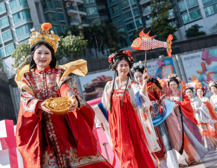 广府年味藏在“意头”里,藏在人与人之间的祝福里。年初四至初六,园区将推出“五福贺新春”真人互动游戏。福、禄、寿、喜、财五路星君与散财童子隐藏于园内各处,游客通过完成猜拳、吉祥话对答等趣味任务,即可收集“利是银票”,兑换广府特色文创礼品,还可参与“新春好物拍卖”,将“意头”转化为可携带的祝福。