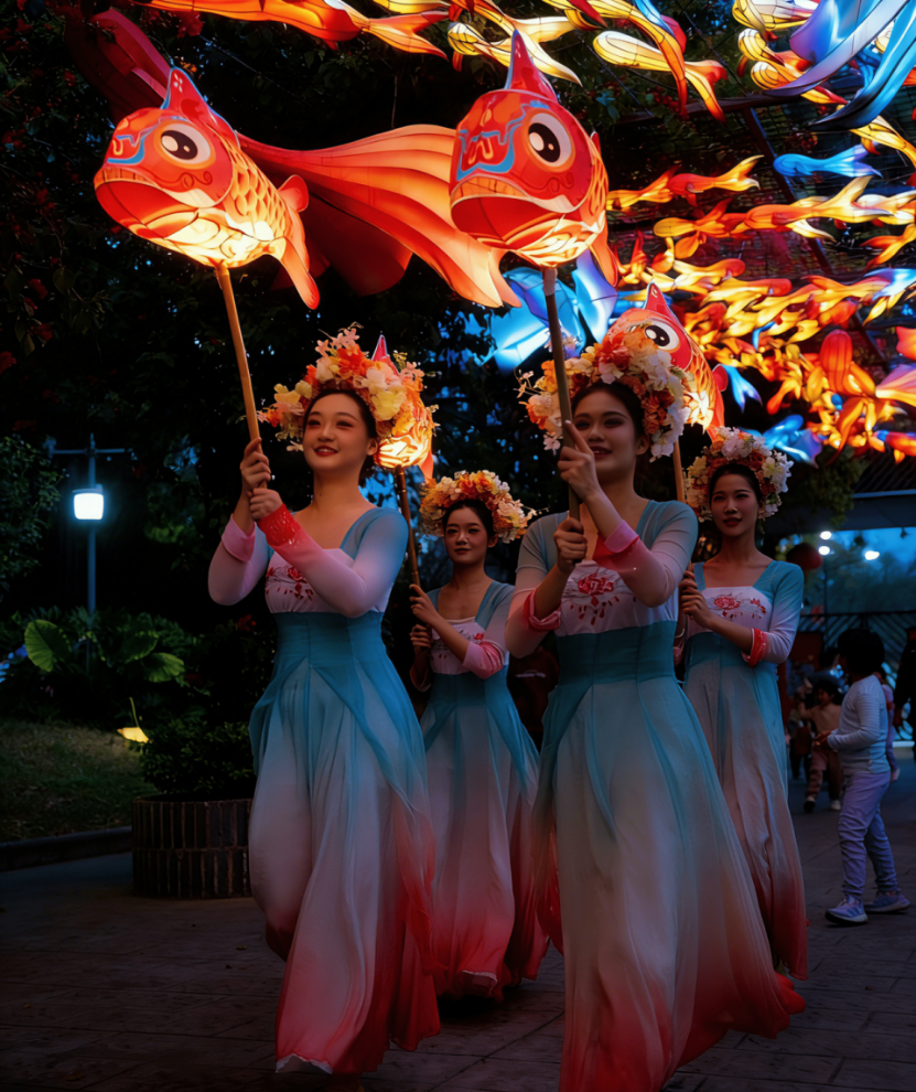 入夜后,上千盏手工彩灯同时点亮,园区化身光影流淌的千灯庙会。