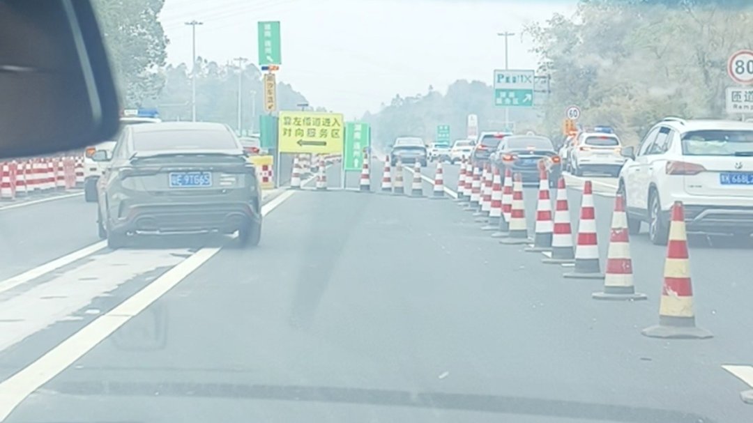 针对公众可能担心的对向车流冲突问题,交警部门采取了扎实措施。南行服务区内,借道区域被完全物理隔离,标志清晰。南行车辆则通过专用通道绕行,不与北行借道车流交叉。