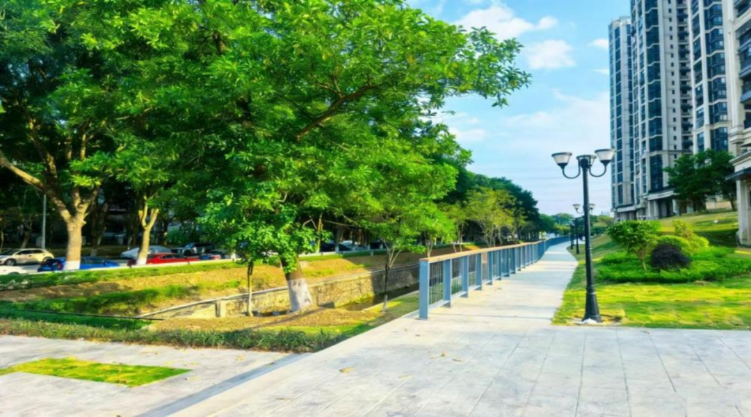 以前,华峰路永和河边的边坡可是让居民直摇头——杂草疯长、黄土裸露,走路都得绕着走。现在不一样了!5000多平方米的边坡统一“穿”上了新草皮外衣,还配上了层层叠叠的灌木“裙摆”,既护住了水土,又养眼得很。更妙的是,这里把人工设计与自然水系巧妙融合,直接打通了社区到河岸的“绿色走廊”。走在园里,清风夹着青草香迎面扑来,满眼都是治愈系的绿色,心情瞬间回血!