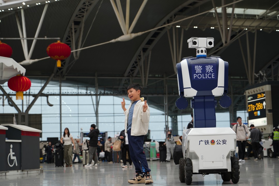 “为确保您平安顺利出行,请您看管好个人的随身物品……”广州南站在出站层和候车区,两台全新升级的智能警用巡逻机器人“小高”引来不少旅客围观和“打卡”。