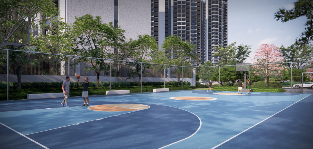 春天里并非冰冷的钢筋水泥建筑,而是充满生机的宜居社区。社区打造250米新岭南风格中央庭院,夏日可在树荫下纳凉,冬日能伴着花香漫步;约3万㎡小区花园搭配周边约7千㎡市政花园,让小区绿地率超35%。楼下还打造了篮球场、足球场、羽毛球场,日常带娃、运动、休闲健身皆可满足,让生活既有烟火气,又满是绿意生机。