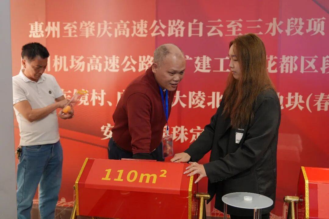 6日下午,签约村民早早来到活动现场等候,摇珠过程设有公证员、律师、村民代表全程监督见证,流程公开透明,确保“一房一珠”透明公正分配。参与摇珠的村民按分组依次有序上台摇号,随着房号抽出,属于自己的“新家坐标”随之揭晓,当场复核并签订《房号确认书》,后续办理安置房相关手续。