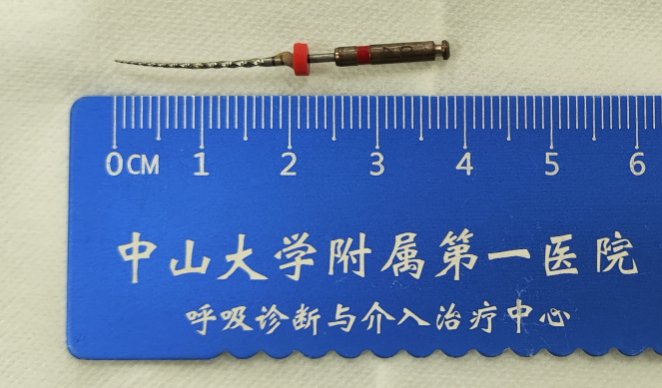 “现在感觉呼吸顺畅,胸口的不适感消失了,太感谢医生团队了!”近日,闯过生死险关的郑先生感慨道。在非洲加纳工作时,46岁的郑先生因为牙痛接受了根管治疗,谁料一根长约4厘米的消融针不慎掉入他的口腔并误吸入气管,极细的针尖越落越深,一旦扎破气管,后果不堪设想。危急之际,郑先生毅然决定回国治疗!中山大学附属第一医院呼吸与危重症医学科副主任、呼吸诊断与介入治疗中心负责人廖槐主任医师团队紧急施救,用惊险的30分钟顺利取出这根消融针。“当时在国外真的很绝望,语言不通加上医疗资源有限,出于对祖国的信任,我们立刻买了回国机票。事实证明这个决定太正确了。”郑先生出院后,他的家属激动地说。