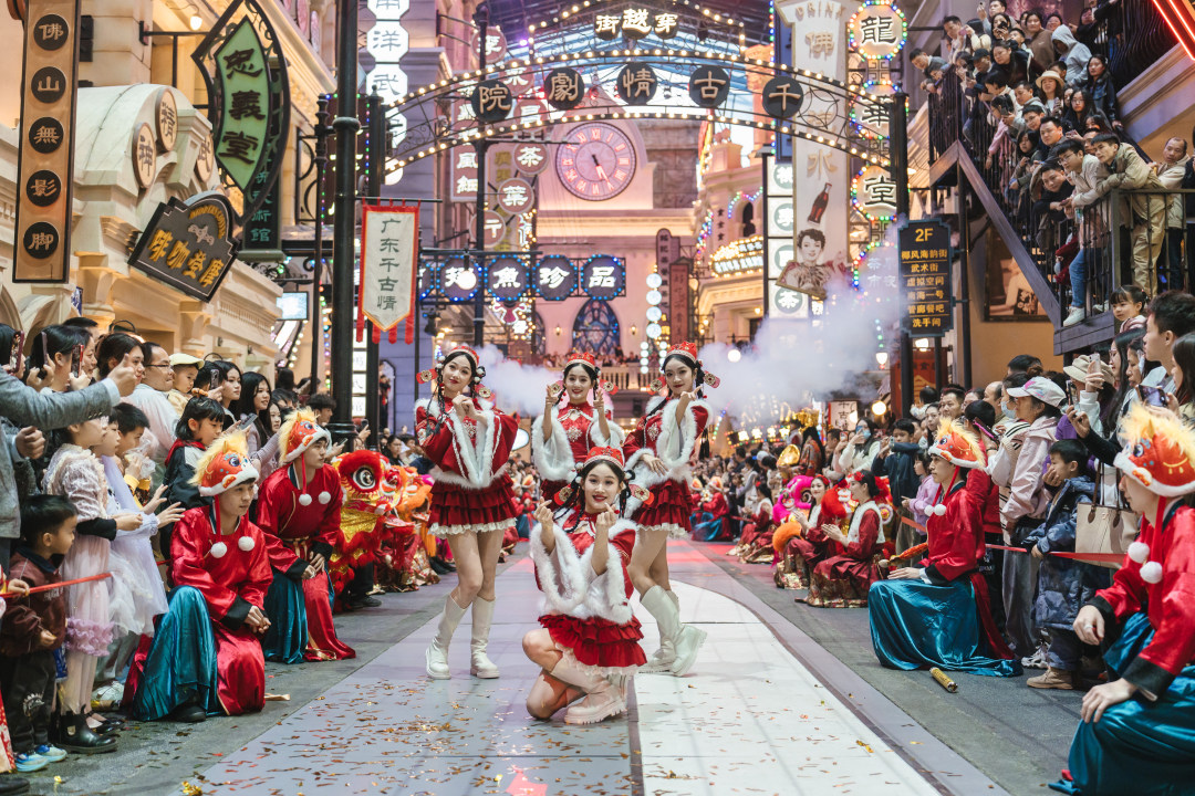 新春活动精彩纷呈,天湖公园每日三场黄飞鸿醒狮表演;大年初一至初五,国潮杂技、财神NPC定时巡游送福。