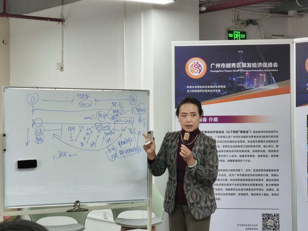 活动伊始,银促会秘书长张洁陪同与会嘉宾参观了促进会新办公场地。通过展板、视频及空间导览,嘉宾们深入了解了银促会的成立背景、职能定位与新空间的服务功能。新址位于越秀区东沙角路,毗邻长者们熟悉的社区服务网络,空间布局融展示、交流、会议于一体,未来将成为银发经济资源对接与思想碰撞的常态化阵地。