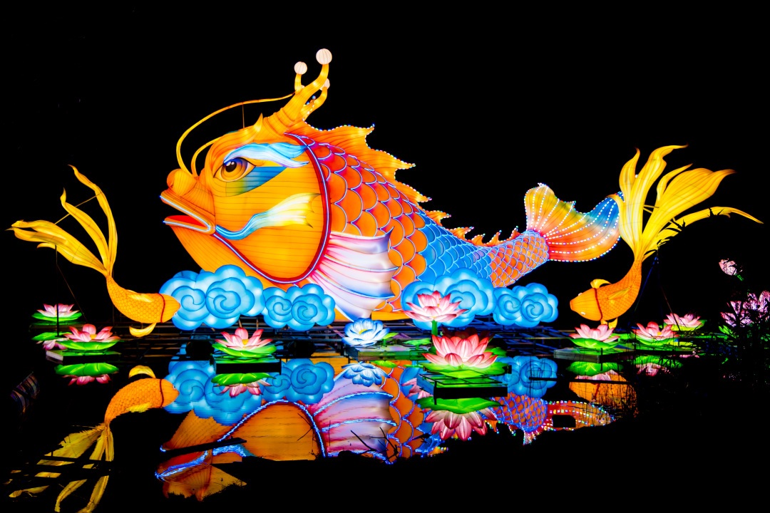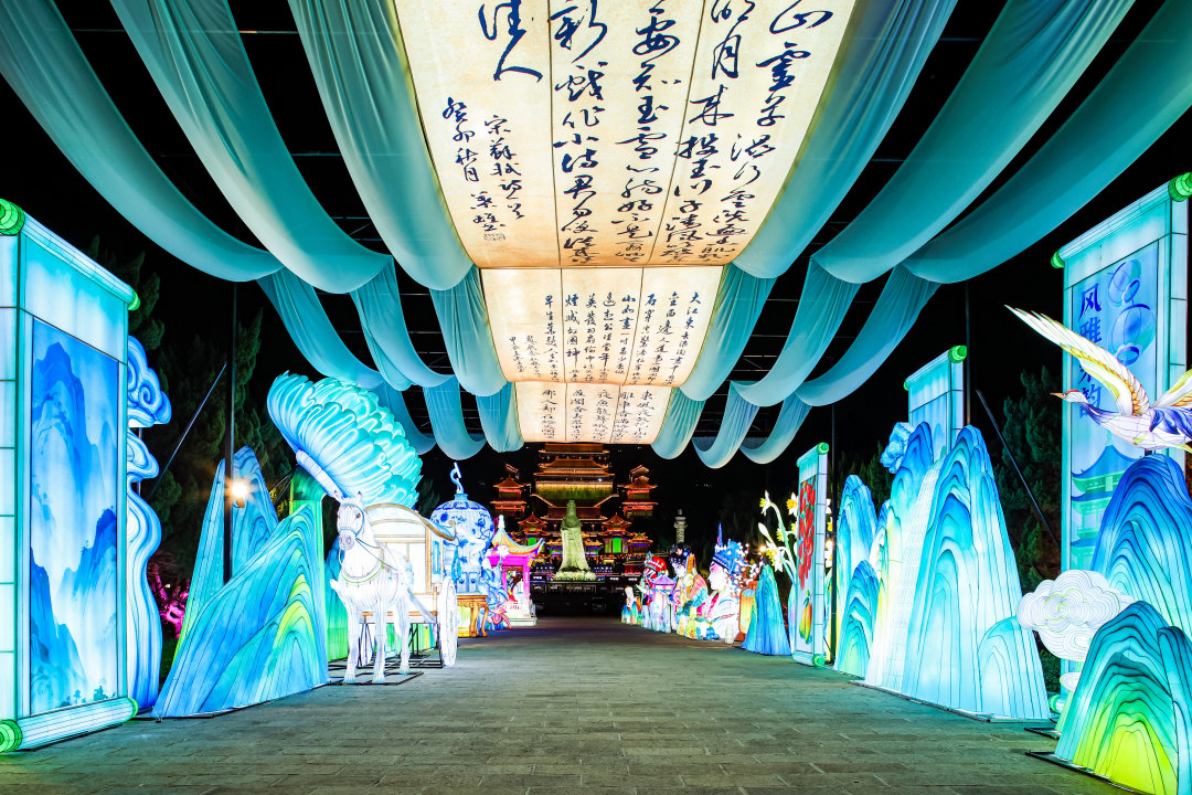 走进占地800亩的灯会园区,一条2.5公里的主游线蜿蜒向前,仿佛一条流淌的“时光之河”。本届灯会遵循中华传统美学“起承转合”的叙事节奏,巧妙设置五大主题展区,引领游客开启一场跨越千年的文化漫游。