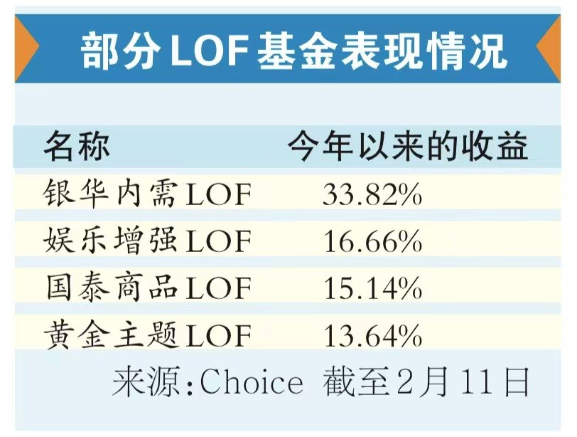 Choice数据显示,截至2月11日,目前市场上共有400多只LOF基金,首尾收益相差超40%,投向黄金、原油、白银等资源品的LOF基金收益居前。