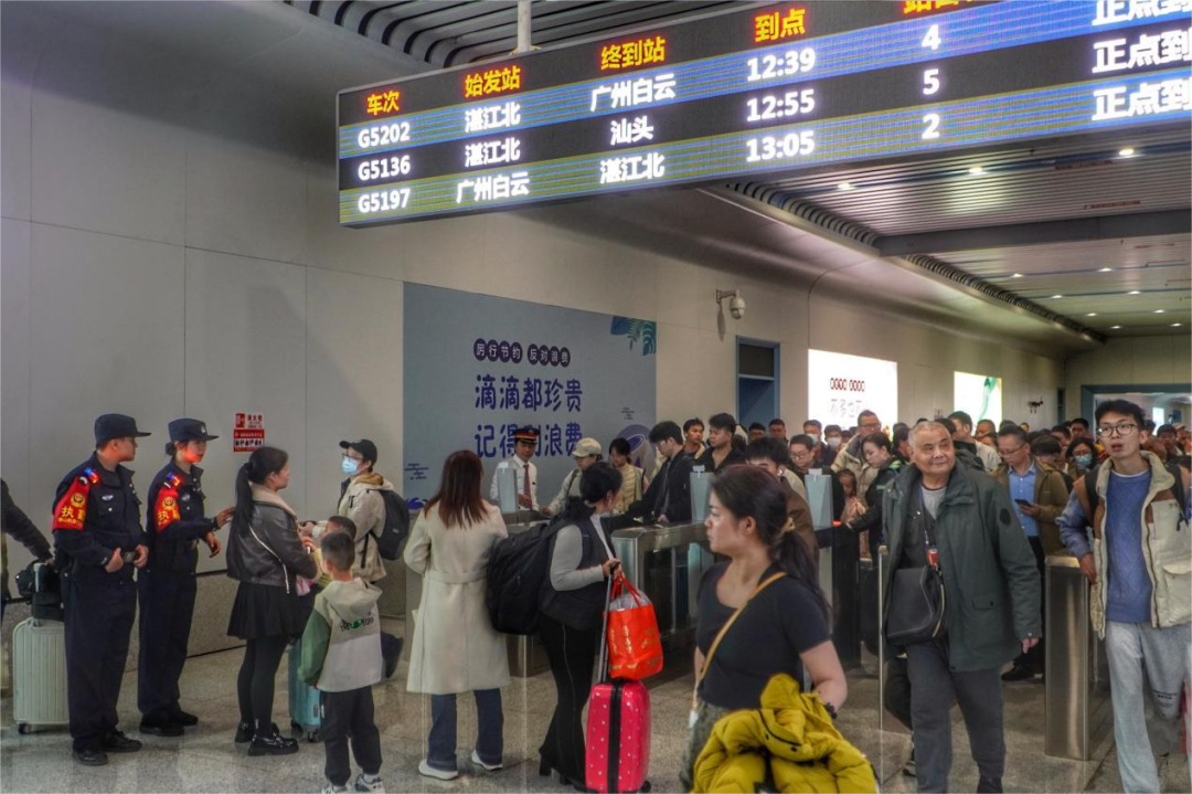 广湛高铁的首个春运,恰逢务工流、学生流、探亲流“三流叠加”的出行高峰。其中,湛江北站作为粤西地区重要的高铁枢纽,成为节前客流汇聚的核心节点。铁路部门计划在2月10日至2月16日客流高峰期间加开25趟临时列车,全力纾解出行压力。