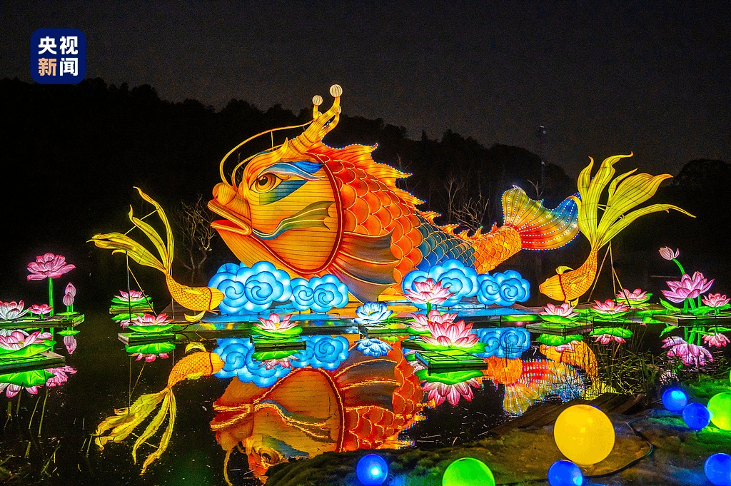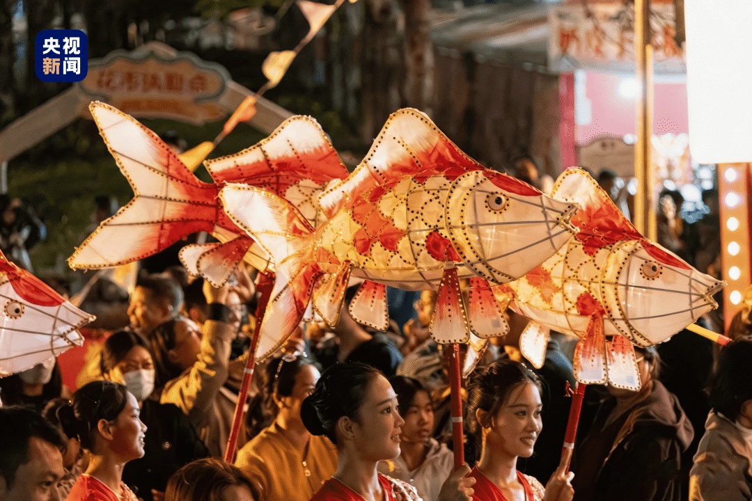 广东人爱鱼,逢年过节,一盏盏造型各异的传统非遗鱼灯象征团圆富足。