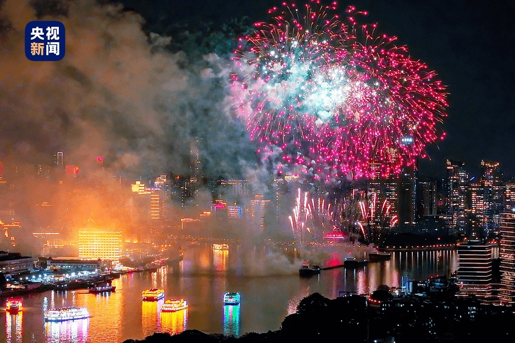 广州春节烟花汇演将于2月17日晚在白鹅潭震撼上演。届时,可乘船泛舟游珠江,纵览烟火与碧水交辉的美景。