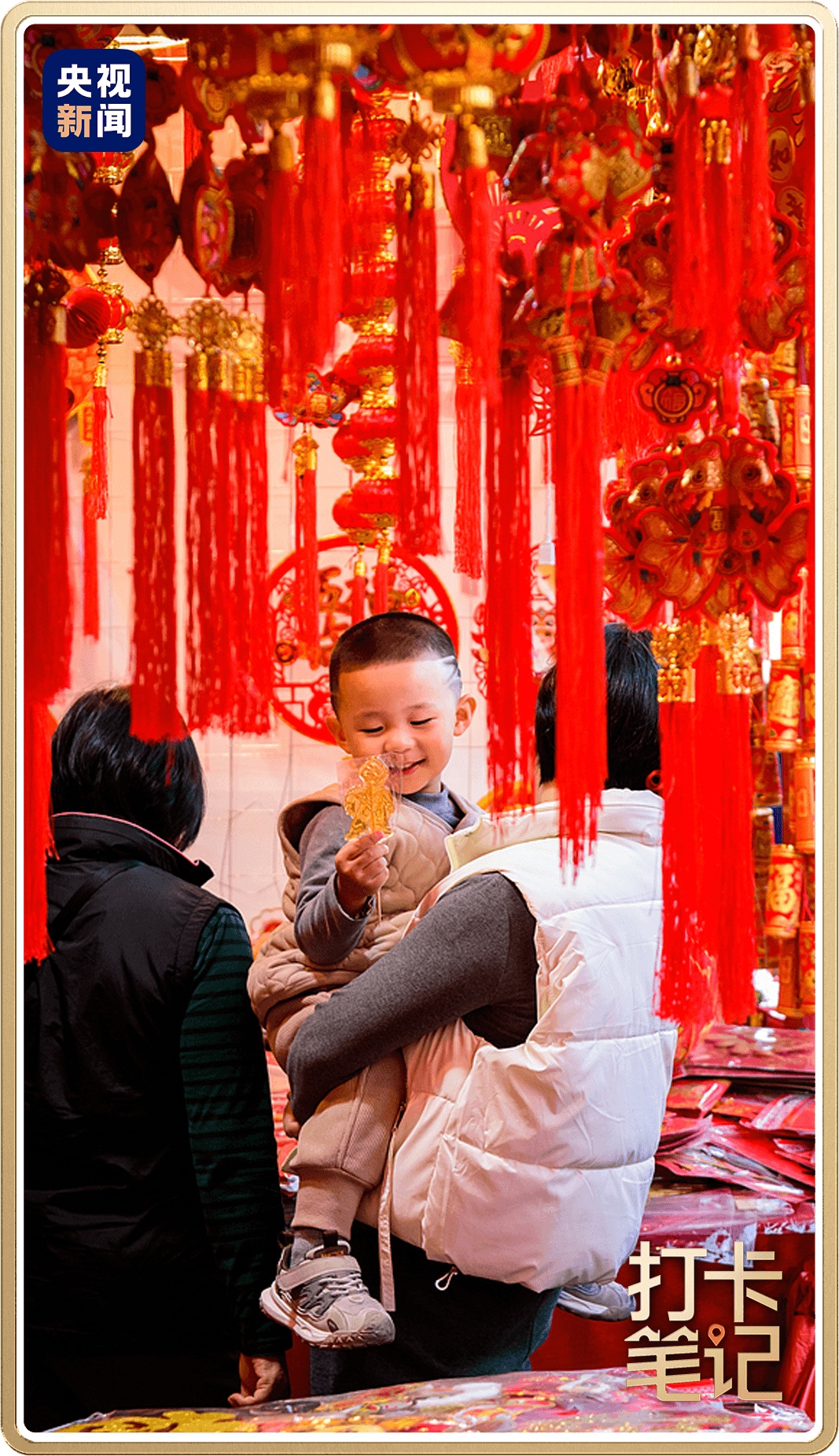花街上放着欢庆的歌,卖着喜人的年货,更有来自天南海北的风味小吃。