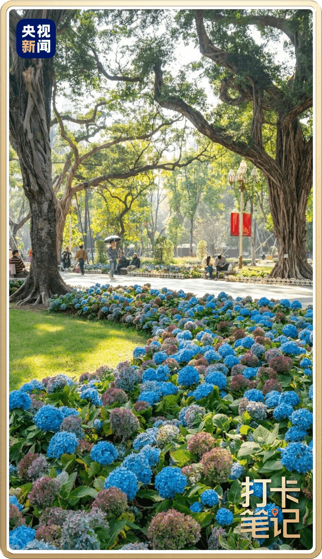 去广州人民公园看热情绽放的绣球花;去深圳梅园、汕尾陆河看梅花如雪覆枝头;去韶关新丰的山谷看彩霞般的樱花;去江门江海、珠海斗门看一望无际的金色油菜花。