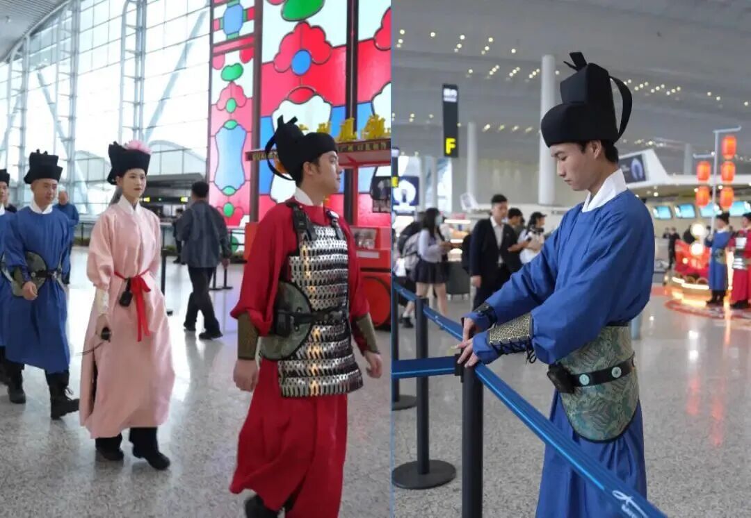春运开启,广州白云机场全员穿越成“宋服卫士”,从服饰妆容到“叉手礼”问候,让你下飞机梦回千年。