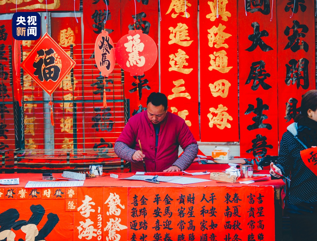 广东人春节习惯购买挥春(粤语中是“春贴”的意思),不少老师傅现场手写,笔墨飞扬间把年味和祝福直接写进你心里。