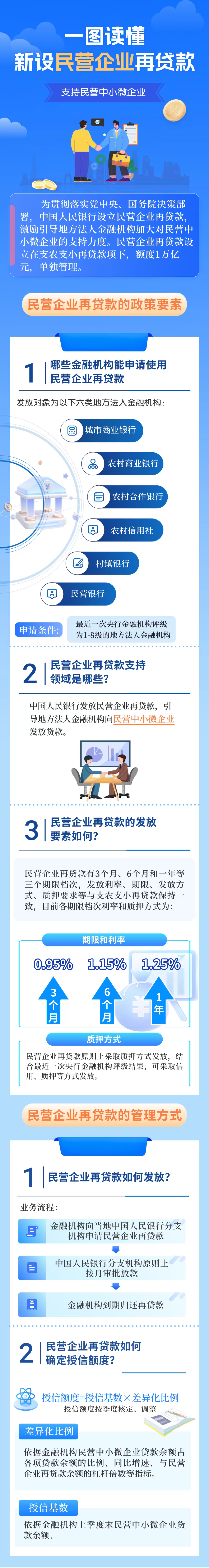 就在上个月,中国人民银行推出1万亿元民营企业再贷款,加力支持民营中小微企业。新政出台后,中国人民银行广东省分行紧扣政策部署,强化工作统筹,细化实施方案,全力保障民营企业再贷款在广东高效平稳落地。一是筑牢制度保障,确保民营企业再贷款政策有序实施。抓紧制定《广东民营企业再贷款管理实施细则》《广东民营企业再贷款授信制度》,并同步向金融机构发布《广东民营企业再贷款工作指引》,细化民营企业再贷款政策要素和办理流程,夯实业务落地制度支撑。二是细化筹备方案,推动业务快速落地。及时核算民营企业再贷款授信额度,强化协同联动推动相关部门出台配套政策措施,全力保障业务高效落地。三是深化政策解读,凝聚落实共识。制作和发布《一图读懂民营企业再贷款》,在全省范围内开展针对性政策宣传解读,凝聚更大工作合力。