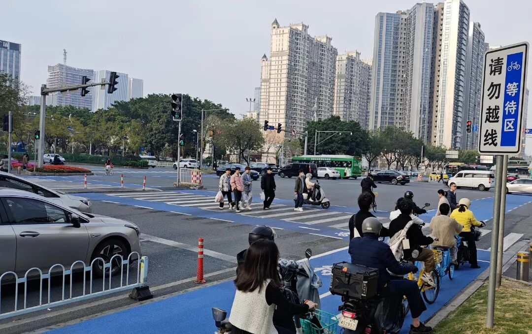 为响应落实“早出发、靠右行、慢慢开”的文明出行要求,天河区结合辖区交通实际,深入开展城市慢行交通治理,率先在全市推行非机动车道等待区分车道精准规划改造。此次改造涉中山大道中—车陂路路口、珠江东路—兴盛路交叉口、珠江西路—华明路、珠江西路—华成路交叉口。