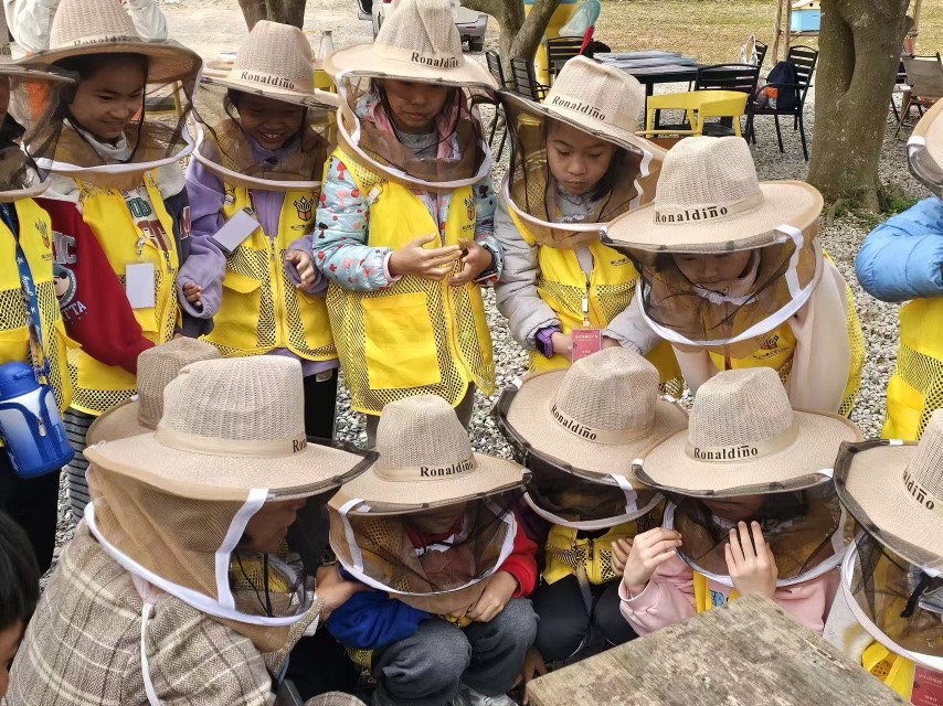 另一条线路聚焦广东省“百千万工程”首批典型村——高明区杨和镇石水村。学员在今育粮园蜂场了解蜜蜂知识,体验提取冬蜜、调制蜂蜜水,品味自然的清甜;随后探访皂幕美学馆、凌云书院等人文景观,理解乡村文旅融合发展脉络。活动还设置了自然生态课程,引导孩子动手制作“年画”植物拓印,将自然之美与春节文化创造性结合。