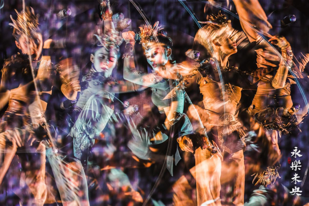 舞剧《永乐未央》由中国东方演艺集团联合山西省文化和旅游厅、山西省文物局、芮城县人民政府等单位共同打造,以永乐宫迁建史诗为叙事主线,提炼出“古建、壁画、琉璃、传承”四重美学维度,分为四个篇章:“筑广厦”“绘至境”“炼釉心”“承光阴”,观众将目睹跨越700年的古今对话:执着技艺的琉璃匠师与七百余岁的“蓝釉角神”相伴相守,共同复原失传已久的孔雀蓝釉制法,延续守护文脉的誓言。