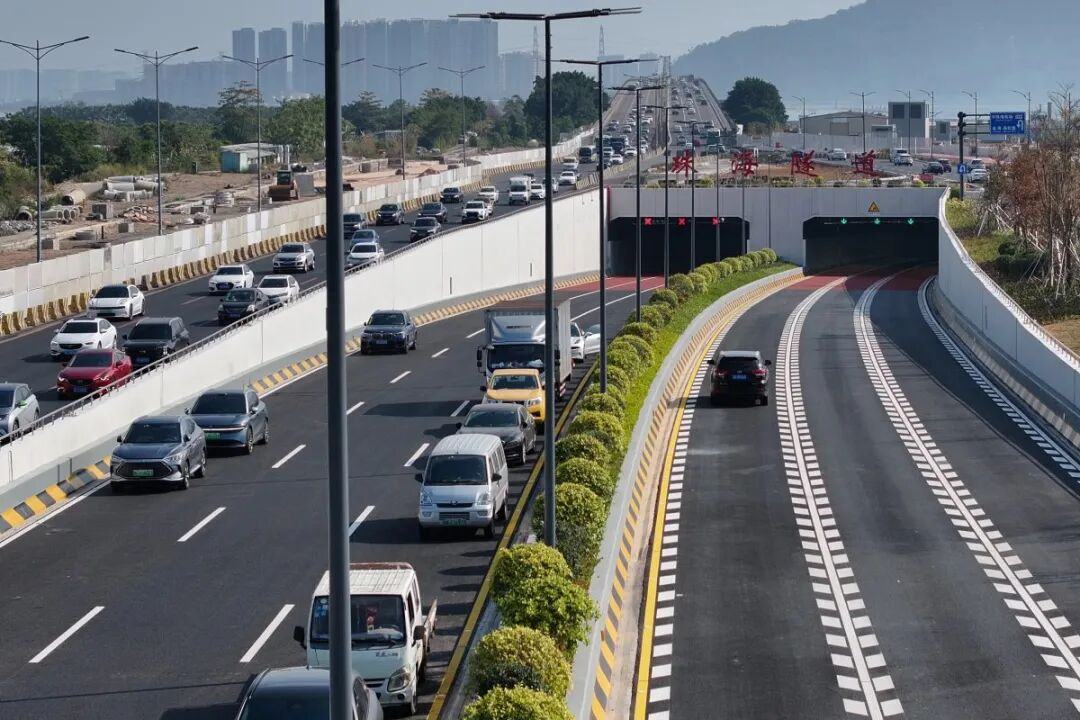 珠海隧道通车后,与珠海大桥形成“北桥南隧”的交通格局。今后,珠海大道主线车流可进入珠海隧道从海底穿行,珠海大道辅道车流可通过珠海大桥跨越磨刀门水道,实现水上、水下桥隧并行,开车通过仅需约5分钟。值得一提的是,珠海隧道具备强大的全天候通行能力,即使在台风等恶劣天气条件下,仍能保障安全畅通,极大增强了城市交通系统的韧性与可靠性。