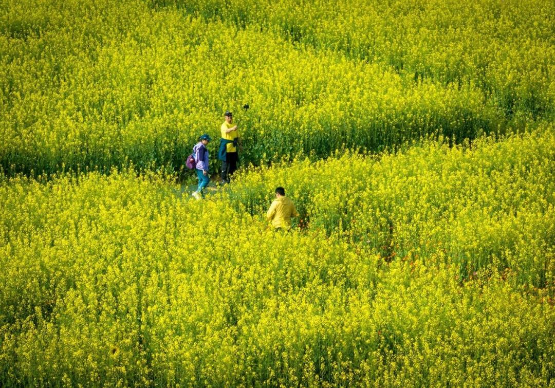 “太震撼了!一眼望不到边的金黄,心情都跟着明亮起来。”正与家人拍照的游客陈先生赞叹道。花海中,随处可见驻足观赏、拍照留念的游人,孩童在田埂边欢快奔跑,摄影爱好者们则用镜头记录下花浪起伏、蜂蝶飞舞的生动景象。
