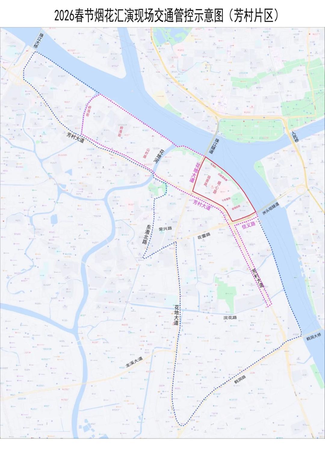 2026年2月17日17:00至19:00视情况、19:00至活动结束,对芳村大道(浣花路口至花地大道路口路段)等区域(路段)实施临时交通管理措施。