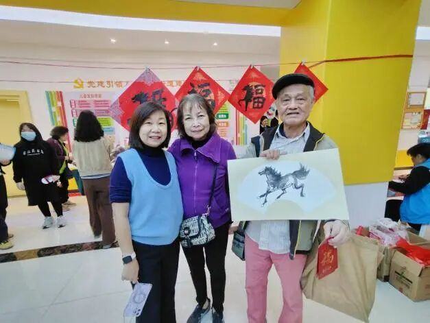 活动现场,书法台前墨香萦绕,社区书法志愿者挥毫写下“马上送福”。接过春联的陈叔高兴地说:“往年都是买现成的,这次能请老师亲手书写,很有意义。谢谢社区和志愿者送来的新春祝福!”活动一侧,“马到成功”幸运套圈摊位上同样充满欢笑声。