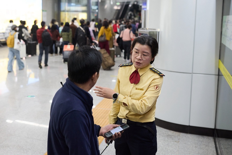 “春运、节假日客流高峰时,每天要在站台上走几万步,连续值守十几个小时是常态,常常累到嗓子沙哑、腿脚酸痛,一回到家倒头就睡。但每次看到乘客的一句‘谢谢’,看到他们顺利出行、团圆重逢时脸上的笑容,就觉得所有辛苦都值得,就慢慢坚持了下来。”胡玲玲说。