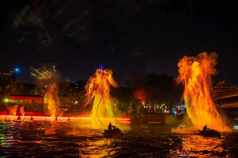 作为本次春节活动的核心亮点,全新重磅打造的大型沉浸式水上实景非遗秀《翠湖幻境》将在民俗村翠湖上演。该项目以人文为叙事核心,在2万㎡实景水域打造360°沉浸式观演空间,演出融合百米水上长龙、浮岛舞台、水爆、激光与空中威亚等多重舞台手段,火壶钢花、侗族大歌、傩舞等多种演艺形式,将传统非遗技艺与现代科技艺术深度结合。在水火光影中,呈现中华文明生生不息的精神气象,为春节期间的文化消费提供了更具品质感与仪式感的选择。